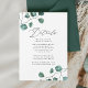 Elégante, eucalyptus mariage détails carte d'enceinte avec l'eucalyptus vert poussiéreux peint à la main et le feuillage aux coins. Personnalisez les cartes d'information des clients mariages en ajoutant des détails clés tels que les chambres d'hôtel, les informations de réception de bienvenue, votre site Web, etc. Conçu pour se coordonner avec notre collection de mariages d'aquarelle moderne Eucalyptus Greenery.