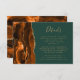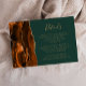 Le bord gauche de cette élégante carte de détails mariage moderne dispose d'une bordure d'agate d'aquarelle dans les tons de rouille et d'orange brûlé, bordée de parties scintillant en faux or. Le texte est en écriture manuscrite de couleur or et en cuivre sur un arrière - plan vert chasseur. L'envers est assorti d'un design de rouille et d'agate dorée.