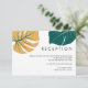 Conçue pour se coordonner avec notre collection de mariage tropical Monstera, cette carte d'enclosure de réception botanique élégante présente deux feuilles de monstera en jaune et vert, surmontant le texte de votre message souhaité.