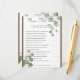 Joli jeu de douche nuptiale avec des réponses sur le dos.