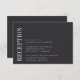 Une petite carte faire-part de mariage pour vos détails de réception, avec "Réception" sur le côté gauche en lettres blanches classiques, et vos détails de réception alignés en bas à gauche. Conçu pour correspondre à notre collection Parallel mariage. Notre colorway de cendres fait une déclaration classique avec des lettres blanches et croustillantes sur un arrière - plan noir doux.