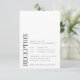 Une petite carte faire-part de mariage pour les détails de la réception, avec "Réception" sur le côté gauche en lettres noires cendrées moelleuses, et les détails de la réception alignés en bas à gauche. Conçu pour correspondre à notre collection Parallel mariage.
