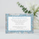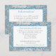 Cette élégante carte de réservation de mariage au motif floral damassé pailleté FAUX de couleur bleu glace argenté présente un fond de flocons de neige blancs assortis qui correspond à l'invitation de mariage présentée ci-dessous. Vous pouvez l'utiliser comme carte de directions, carte de réception ou carte d'information. Elle serait parfaite pour un thème de mariage hivernal, ou un mariage de Noël ou du Nouvel An. Si vous avez besoin d'autres articles assortis, ou si vous souhaitez une autre combinaison de couleurs, veuillez envoyer un courriel à niteowlstudio@gmail.com avec votre demande.