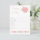 Cette Prédictions pour Baby Card est un jeu de baby shower mignon pour vos prédictions invités. Un beau gardien. La belle coquille d'aquarelle, le corail et le feuillage avec un brin de rose pour un baby shower fille. L'invitation correspondant est disponible en magasin pour correspondre.