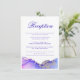 Une carte de boîtier mariage formelle ornée d'un bel art alcoolique aux couleurs violet, violet, bleu et rose. Une carte de détails élégante avec "Réception" à l'avant et "Directions" à l'arrière. La typographie est accentuée de riches tons bijoux en tourbillons de couleur liquide d'améthyste et saphir. Belle et complexe comme agate et géodes. La carte a un modèle facile à modifier, auquel les détails du mariage peuvent être ajoutés. Purple Violet Abstrait Accueil Mariage Instructions Carte Enclôture. Art abstrait original de l'artiste internationale Pauline Benjes.