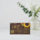Faire-part de mariage de tournesol rustique élégant budget abordable MINI TAILLE en ligne RSVP réponse carte boîtier avec code QR à balayage (généré automatiquement) sur un arrière - plan de bois de grange brun avec cordes de lumières scintillantes. +++++++++++++ Voir la collection pour le papier à lettres correspondant.