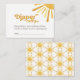 Vous cherchez la papeterie parfaite pour votre prochain baby shower ensoleillé? Ne cherchez pas plus loin que notre Ray of Sunshine Retro Baby shower Diaper Raffle Enclôture Card. Ce livre joli et joyeux pour la carte d'enceinte pour bébé présente un design jaune rétro qui apportera un sourire aux visages de vos invités. Le soleil jaune vif et les accents de boho rétro rendent cette invitation vraiment unique, tandis que le design neutre pour le genre le rend parfait pour n'importe quel baby shower. Que vous attendiez un petit garçon, une fille, ou que vous gardiez le sexe une surprise, cette invitation donnera le ton pour un événement joyeux et mémorable.