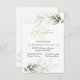 Carte de réception avec une illustration de feuillage vert et or dans le style aquarelle.
