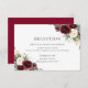 Conçue pour coordonner avec notre collection de mariages rustiques bourguignonnes, cette élégante carte de réception de mariage présente de belles aquarelles bordeaux et des fleurs d'ivoire. Personnalisez-le avec vos détails facilement et rapidement, appuyez simplement sur le bouton customiser pour réorganiser et formater le style et le placement du texte. c) Le Happy Cat Studio