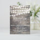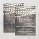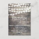 Carte de réception de mariage avec du bois rustique et guirlandes lumineuses. Un fond en bois gris vintage décoré avec une guirlande lumineuse. Invitation de mariage parfaite pour un mariage avec thème lumières nocturnes, thème grange, thème jardin, mariage en plein air avec lumières scintillantes.