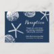 Cartes de réception de mariage thème plage bleu marine coquillages.