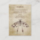 Cette simple carte d'enceinte de réception de mariage de style vintage présente une libellule d'aquarelle dans les tons marron dressée contre un arrière - plan vintage.