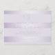 Réception de Mariage | Monogramme Élégant Moderne avec Rayures Brillantes Lilas | Moderne et Sophistiqué tout en étant tendance et discret - Une touche moderne sur les faire-part de mariage à rayures - Faire-part de mariage Unique conçu pour laBarefootBride™ par ©WhimsicalArtwork™ présentant un monogramme légèrement décalé et superposé au-dessus de votre nom complet sur des rayures lilas brillantes, le tout sur un fond lilas pâle - le dos présente un effet ombré très léger dans la même brillance lilas. Tout le texte, y compris les styles et les couleurs de police, est personnalisable - si vous avez besoin d'aide, n'hésitez pas à me contacter.