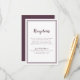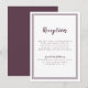Simple, minimaliste et élégante carte d'information de réception de mariage avec un design contemporain et une double bordure encadrée de violet cassis sur fond blanc croquant. La formulation traditionnelle offre une sophistication intemporelle mais moderne. Personnalisez le design de mariage avec vos détails en lettrage violet cassis et script. Le dos de la carte est assorti en cassis uni.
