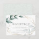 Invitation de réception de mariage | Botanique Vert Jade Gris - variations de Vert Jade Gris - feuilles vertes atténuées en haut et en bas sur un cadre doré de style terrarium, une texture de papier faussement fait main dans un ton vert jade très clair au dos. Frais et simple - pourtant délicieusement élégant. Cela fait partie d'une collection de suites de mariage à thème coordonné conçue par la BarefootBride™. Caractéristiques d'un style de texte classique simple (qui peut être modifié si vous le souhaitez, cliquez simplement sur Personnaliser ce modèle, puis dans le menu déroulant, cliquez sur Cliquer pour personnaliser davantage - ici, vous pouvez modifier la police et les couleurs du texte)