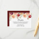 Carte de réception de mariage floral Bourgogne élégante avec un magnifique bouquet de fleurs de pivoine à l'aquarelle au-dessus de la typographie chic. Un choix d'invitation audacieux qui se démarquera parmi tous les autres styles de design de mariage en soirée cet automne.