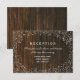 Une carte de réception de mariage rustique et élégante avec une bordure de baby's breath sur un fond inspiré du bois de grange.