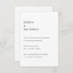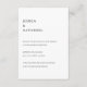 Carte d'enceinte de réception de mariage moderne avec une disposition simple et minimaliste avec les détails dans l'alignement gauche du texte noir sur un arrière - plan blanc. Un design simple et sobre qui se révèle tout de même élégant.