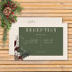 Nous vous présentons notre carte de réception de mariage d'hiver enchanteresse, où l'élégance intemporelle rencontre la beauté de la saison. L'arrière - plan crème, astucieusement affligé de doux accents blancs, donne un ton captivant à votre journée spéciale. Dans la zone de texte vert sauge foncé, les détails de votre réception de mariage brilleront, entouré d'un cadre vert sage clair délicat qui ajoute une touche de raffinement. Laissez-vous séduire par l'esprit de l'hiver avec ses touches époustouflantes de verdure, avec ses saints ornés de fruits rouges riches, ses mausolées aux délicates baies blanches et son charme intemporel de pin vert. Ce design d'hiver d'inspiration merveilleuse saisit l'essence de la saison et invitation vos invités à célébrer votre amour dans un cadre qui respire la grâce naturelle et le charme festif. Avec ce design, vous êtes sûr de préparer le terrain pour une célébration remplie d'amour et de joie. Laissez-vous séduire par la magie de l'hiver et laissez votre mariage être le reflet de la beauté de cette saison. Il fait partie de la suite Rustic Winter Berries & Pine Cream mariage. Créé par Simply Farmhouse Press.