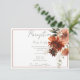 Ce design moderne et rustique de la carte de réception de mariage comprend un bouquet d'angle de pêche rouille, rouille, terre cuite, fleurs brunes et blanches. L'arrière - plan est blanc avec un cadre fin en terre cuite; le dos est une terre cuite molle. Ce design fait partie de la Rustic Terracotta Rust Flowers Mariage Suite de cartes créées par Simply Farmhouse Press.