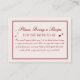 Cette carte d'accompagnement de demande de recette de mariage personnalisée à l'occasion de la Saint-Valentin ajoute une touche romantique et d'autrefois à votre célébration, parfaite pour les rassemblements remplis d'amour inspirés par les idées de mariage "l'amour est dans l'air" et un thème de mariage intemporel "l'amour est dans l'air". Conçue pour s'associer magnifiquement à une invitation de mariage "l'amour est dans l'air", elle complète les idées classiques de mariage à la Saint-Valentin, un thème de mariage raffiné à la Saint-Valentin, un thème de mariage charmant aux cerises, des idées de mariage ludiques aux cerises et des idées de mariage élégantes en bordeaux.