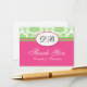Carte de remerciement de mariage rose et vert. Des cartes d'invitation assorties, des cartes de réponse et des faire-part sont disponibles dans cette boutique.