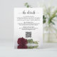 Cette belle carte de boîtier mariage est conçue pour vous donner de l'espace supplémentaire pour toutes les informations dont vos invités peuvent avoir besoin, y compris le registre, la réception, les voyages, l'hébergement, etc. ainsi qu'un code QR personnalisable qui oriente vos invités vers votre site Web pour plus d'informations. La carte présente un design magnifique avec un seul rose de couleur bordeaux, marron ou rouge vif et un titre de calligraphie en dentelle avec "les détails".