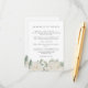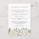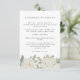Cette carte d'invitation élégante et bohème comprend une lettre grise avec une bordure romantique de roses blanches dans une palette douce de blanc ivoire et de vert sauge.