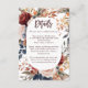 Cette carte de détails mariage sur le thème de l'automne est le complément parfait à votre suite d'invitation boho rustique. Orné de fleurs neutres chaudes dans les tons terre cuite, bleu, marine et ivoire, il donne le ton d'une célébration romantique du jardin. Partagez des informations importantes comme l'emplacement de la cérémonie, le code vestimentaire et les notes de voyage dans le style. Idéal pour les couples qui souhaitent mariage en plein air ou en vignoble en automne.