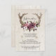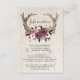 Carte de Mariage Rustique Boho Floral Cerf Bois Enclosure - La carte de mariage comporte des bois de cerf Boho ornés de fleurs magnifiques rose clair, blanc et bordeaux. Ces invitations bohèmes présentent des bois de cerf en bois avec des fleurs sur un fond en bois.