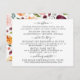 Les cartes d'information des mariages comprennent la réception, l'hébergement pour deux hôtels et les informations sur le site Internet des mariages. Le dos de la carte présente un motif floral de belles fleurs d'aquarelle, dont des roses, des dahlias, des fleurs de pivoines et de la verdure, dans une magnifique palette automnale de rouge bordeaux, jaune doré, orange pêche, rose roux et tons verts.