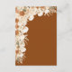 Remettez à vos invités toutes les informations essentielles à l'aide de cette carte de détails rustique à fleurs mariage, décorée d'élégants roses, d'herbe de pampas, d'eucalyptus feuille, de lys calla et de branches de fougères. Les tons chauds en terre cuite associés à des polices modernes créent une carte élégante pour l'enceinte, idéale pour le partage d'hébergements, de détails de voyage ou de plans de réception. Cette carte est conçue pour compléter les thèmes mariage de automne, rustique chic, et les célébrations bohème, tout en coordonnant harmonieusement avec le reste de la collection Boho Terracotta Rose & Pampas Mariage, y compris les invitations, les cartes RSVP, enregistrer les dates, et la signalisation de bienvenue.