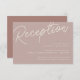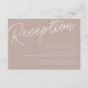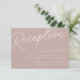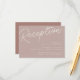 Une petite carte faire-part de mariage pour vos détails de réception, avec "Réception" en haut en écriture cursive, et vos détails de réception alignés en bas à droite. Conçu pour correspondre à notre collection de mariages Script Watermark. Notre colorway Rose Taupe est un élégant mélange de roses neutres terreux, avec du lettrage blanc chaud et blanc classique sur un arrière - plan taupe rose.