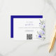 La carte d'enceinte de code QR du site mariage présente un beau design avec des fleurs bleues et ivoire royales sur le côté droit, ajoutant une touche vibrante à l'arrière - plan blanc. Le côté gauche comprend un texte invitant les clients à visiter le site mariage du couple pour plus d'informations, avec un code QR pour un accès facile. Cette carte allie des éléments floraux traditionnels à une technologie moderne, ce qui en fait un ajout pratique et élégant à toute suite de faire-part de mariage.