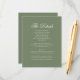 Partagez toutes les informations essentielles sur votre grande journée avec la carte de Mariage Sage Green Leaf Monogram Crest Détails de la feuille. Doté d'une crête monographique personnalisée et élégamment entourée de feuilles verts à la sauge douce, ce design complète parfaitement votre thème mariage d'inspiration nature. Les accents vert sauge apaisants contre un arrière - plan propre créent un look de sophistication intemporelle tout en fournissant à vos invités les détails importants dont ils ont besoin.