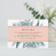 Conçue pour coordonner avec notre collection de mariages botaniques tropicaux Sanibel, cette carte d'enceinte de réception de mariage chic de plage comprend vos coordonnées de réception affichées sur une bande de pêche estivale avec des frondes de palmiers vert de style vintage qui s'émerveillent.
