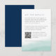 Conçue pour coordonner avec notre collection de mariages Seaglass Tides, cette carte d'information d'invités chic du littoral comprend un simple lavage à l'aquarelle de couleur verte de mer le long du fond, ancrant vos principaux détails de mariage, comme les chambres d'hôtel, les informations de bienvenue à la réception et le site Web. Inclut un code QR personnalisable pour faciliter la recherche de détails ou de RSVP.