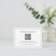 Simple Mariage Website Enclôture Card avec un design moderne et élégant avec votre QR Code personnalisé et votre message entouré d'une fine bordure. Tout le texte est vert forêt sur un arrière - plan blanc et peut être changé en n'importe quelle couleur que vous désirez en cliquant sur le bouton "personnaliser". Une carte Mariage design et chic qui s'adapte à tous les styles de suite de faire-part de mariage.