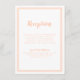 Simple, minimaliste et élégant Mariage Réception Informations carte boîtier dispose d'un design contemporain avec une bordure à double cadre en pêche sur un arrière - plan blanc classique. Le libellé traditionnel apporte une sophistication intemporelle et moderne. Personnalisez le design mariage avec vos détails en lettres de pêche et en écriture. Le dos de la carte correspond à la pêche solide.