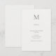 Modern wedding details card featuring a refined single initial monogram and clean, minimalist typography. Designed for civil ceremonies, city hall weddings, and contemporary legal celebrations, this details card presents essential event information with clarity and elegance.