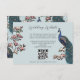Ce site d'oiseaux moderne QR Code Enclume Card présente des fleurs d'oiseaux paons et de magnolias dessinées à la main, bleues et turquoises, ainsi qu'un élégant motif à l'arrière. Tout le texte est modifiable.