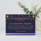 Celestial Rainbow Blue Sun Moon Stars Astronomy Site Mariage RSVP QR Code Enclôture Cartes comporte un arc-en-ciel coloré soleil, lune et étoiles cadre sur un arrière - plan bleu. Le texte peut facilement être personnalisé avec vos noms, le site Web mariage, le code QR scannable et le message pour un design mariage unique d'une gentillesse afin de tenir vos amis et votre famille à jour sur votre prochaine journée spéciale. Conçu pour vous par ©2022 Evco Studio. Afficher www.zazzle.com/store/evcostudio pour plus de produits dans cette collection