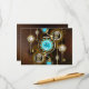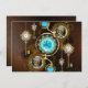 Turquoise lenses with antique watch with brass gears and golden keys on rusty, brown background. Steampunk style.