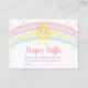 Ces adorables Tickets de Raffle de couches sont une activité de Baby shower parfaite! Il vous suffit d'en insérer un avec votre Baby shower Invitation. Les clients entrent leur nom sur le Billet de Raffle de la couche et apportent un paquet de couches pour avoir la chance de gagner un prix ! Un excellent moyen pour maman-to-be de stock sur des couches très nécessaires tout en hébergeant une tombola de Baby shower amusante! Le design comprend un soleil avec un arc-en-ciel aux couleurs pastel et des confettis de parties scintillant en faux or.