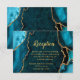 Make a bold and elegant statement with this teal blue and gold agate marble wedding reception card. Featuring rich jewel-toned ocean hues, organic stone textures, and shimmering gold accents, this design beautifully complements a luxurious wedding celebration. Perfect for formal, modern, or glamorous events, the dramatic contrast of teal blue and metallic gold sets the tone for an evening of cocktails, dinner, and dancing. Fully customizable with your reception details, this agate-inspired reception enclosure adds a refined and cohesive touch to your wedding stationery suite, ideal for fall or winter weddings.