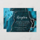Make a bold and elegant statement with this teal blue and silver agate marble wedding reception card. Featuring rich jewel-toned ocean hues, organic stone textures, and shimmering silver accents, this design beautifully complements a luxurious wedding celebration. Perfect for formal, modern, or glamorous events, the dramatic contrast of teal blue and metallic silver sets the tone for an evening of cocktails, dinner, and dancing. Fully customizable with your reception details, this agate-inspired reception enclosure adds a refined and cohesive touch to your wedding stationery suite, ideal for fall or winter weddings.