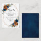 Elégant bleu marine, Terracotta, Orange terroir fleurie carte de réception de mariage avec un élégant bouquet de bleu marine, des pivoines roses couleur terre cuite et des feuilles d'eucalyptus vert. Veuillez me contacter pour toute aide sur la personnalisation ou si vous avez besoin d'un autre produit avec ce design.