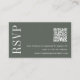 Personnalisez cette petite carte de boîtier avec un code QR personnalisé et votre site Web mariage pour diriger les invités vers RSVP en ligne. Une belle conception minimaliste dans un élégant vert herbacé foncé avec des sous-tons d'olivier pour une esthétique boho d'inspiration nature qui fonctionne pour toute saison.