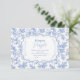 Ajoutez une touche élégante à vos festivités de baby showers avec notre Baby shower de de couches Toile De Jouy Bow, la carte de fermeture de couches. Cette charmante carte présente le motif classique Toile De Jouy, présentant des scènes pastorales complexes qui apportent un sens de sophistication et de grâce à votre célébration. Le délicat accent arc ajoute un détail sucré qui complète parfaitement l'invitation et d'autres décors thématiques. Conçu pour s'intégrer en toute transparence dans votre baby shower, ce boîtier carte invitations invités à participer à une délicieuse tombola de couches. La carte fournit des instructions claires sur le fonctionnement de la tombola, encourageant les invités à apporter un paquet de couches en échange d'une chance de gagner un prix spécial. Imprimée sur un carton de haute qualité, la Diaper Raffle Enclume Card améliore non seulement votre décor de baby shower, mais sert aussi d'élément fonctionnel qui promeut le fiançailles et le divertissement parmi les invités. Le design intemporel le rend adapté à tous les styles de baby shower, des réunions élégantes aux célébrations fantaisistes. Rendez votre baby shower encore plus mémorable avec cette carte d'enceinte exquise, permettant à vos proches de se joindre à l'excitation d'accueillir la nouvelle arrivée tout en ajoutant une touche de charme vintage à votre événement.