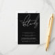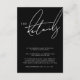 Typographie minimaliste noir et blanc Script Mariage Détails Cartes - Élégance classique dans une esthétique sombre. Élevez votre faire-part mariage avec nos cartes de détails de typographie en noir et blanc, un choix intemporel pour votre journée spéciale. Ces cartes de détails combinent harmonieusement des éléments de design classiques et élégants avec une esthétique sombre, créant un contraste saisissant qui donne une tonalité formelle et sophistiquée. La simplicité du code couleur noir et blanc et l'élégance de la typographie blanche font de ces cartes de détails un choix parfait pour les couples à la recherche d'un énoncé simple mais impactable. Choisissez cette invitation à laisser briller votre amour dans une fusion classique et moderne